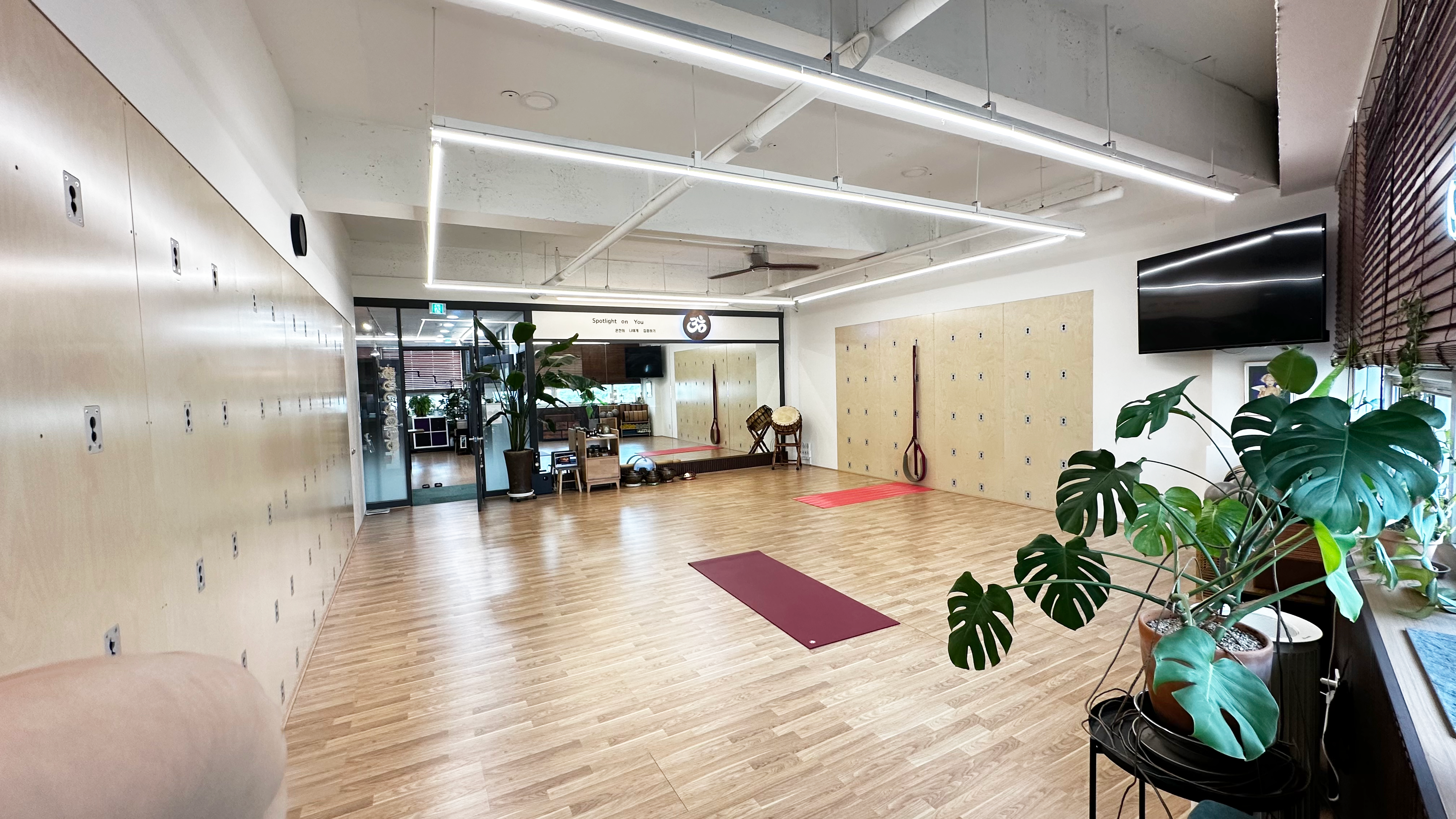 벽을 이용한 월요가(Wall Yoga) 수업은 척추를 길게 늘려주고 몸의 균형을 회복하도록 돕습니다.